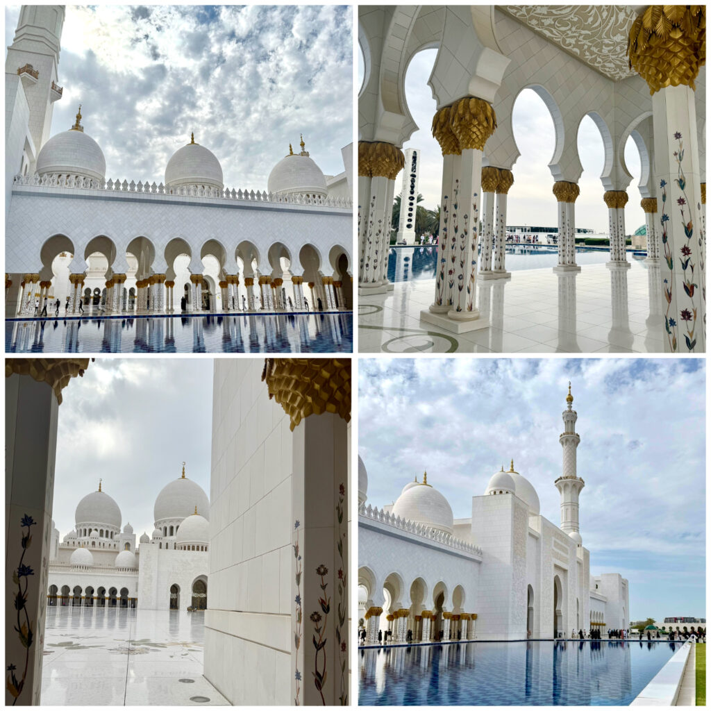 Dekoracje wnętrz wykonywali artyści z całego świata. W meczecie znajduje się siedem pozłacanych żyrandoli o różnych rozmiarach, wykonanych z kryształów Swarovskiego największy z nich jest jednocześnie największym na świecie żyrandolem. Moim zdaniem najpięknieszy meczet w jakim do tej pory byłam.