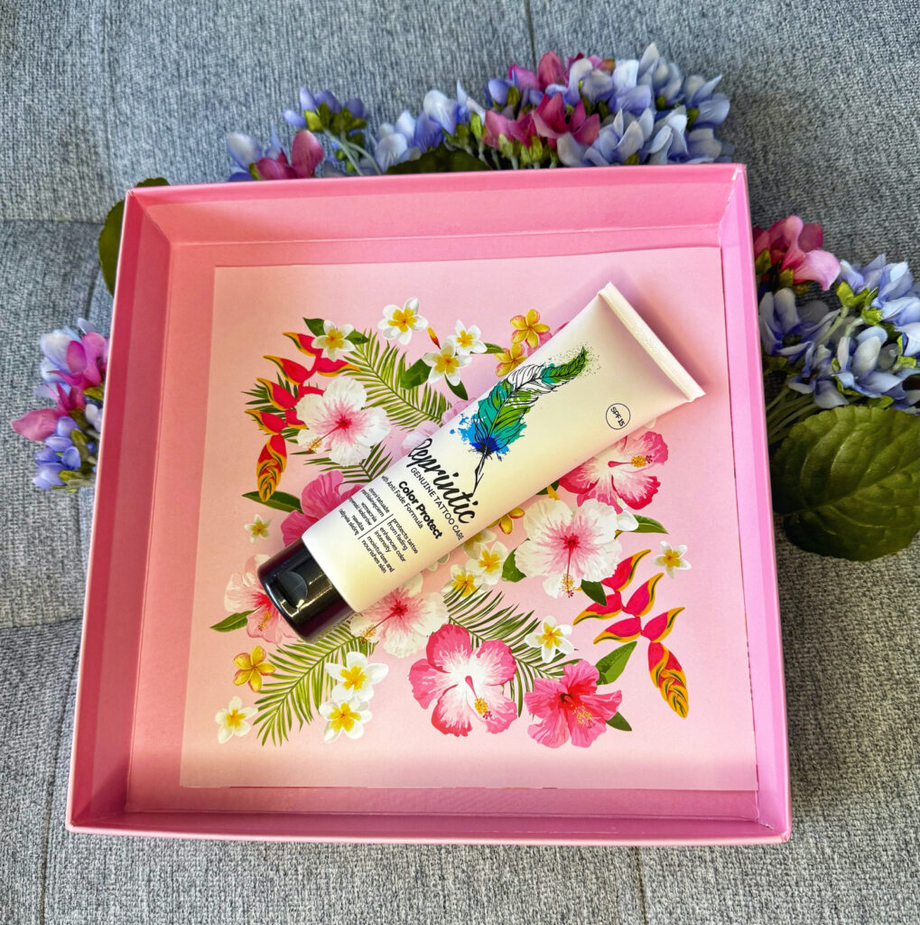 Produkt nie tylko chroni tatuaż pormieniownie UV , ale również pobudza kolor.